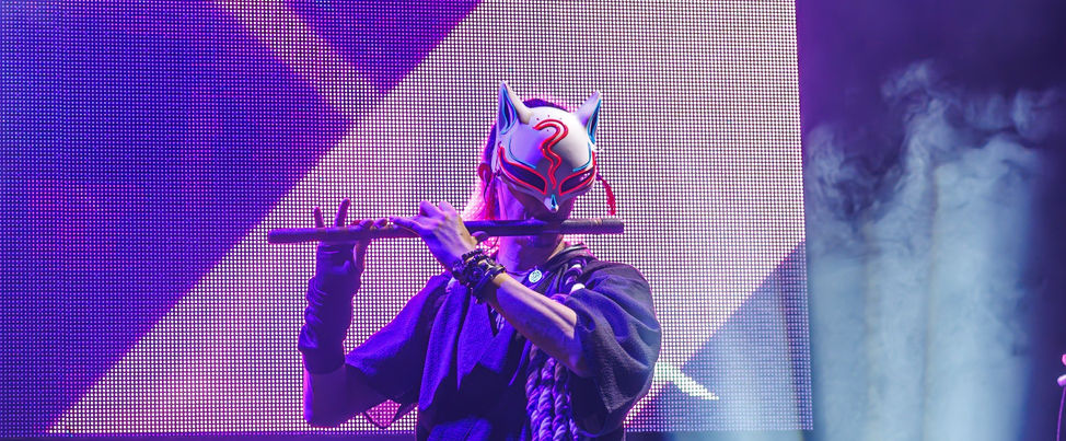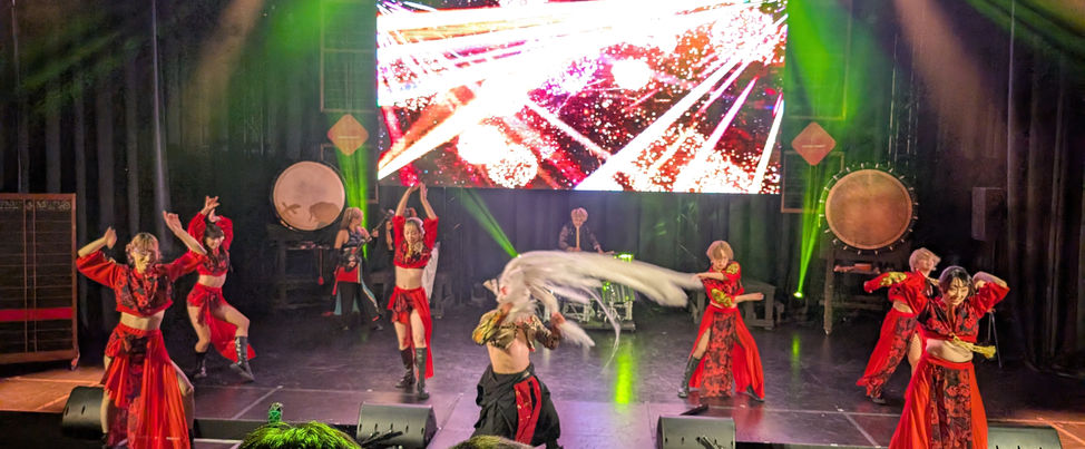 和楽器×DANCE MUSICをベースに、パフォーマーたちが殺陣や歌舞伎の獅子と、